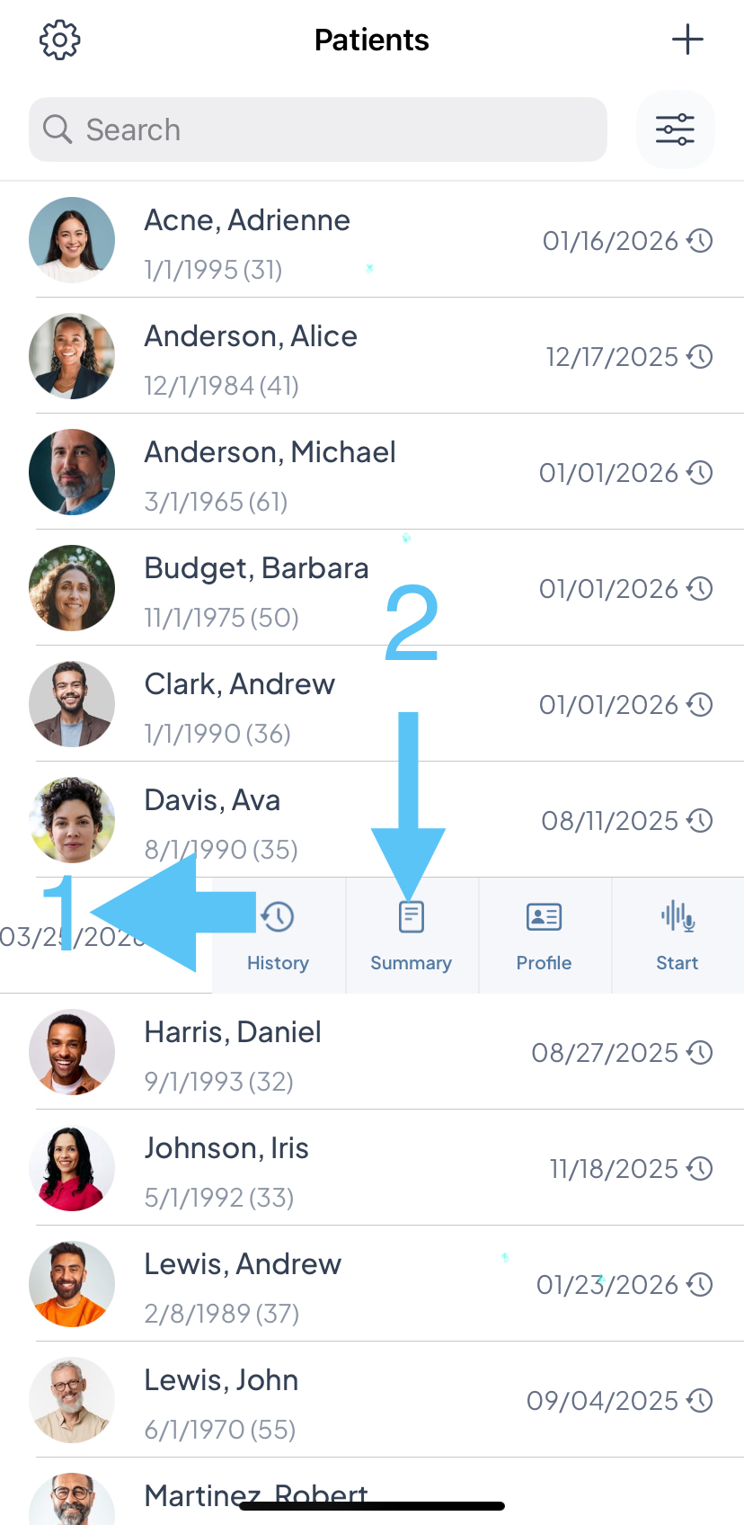 - The Summary lives in its own tab inside each patient's record and is available on both the web and mobile app.