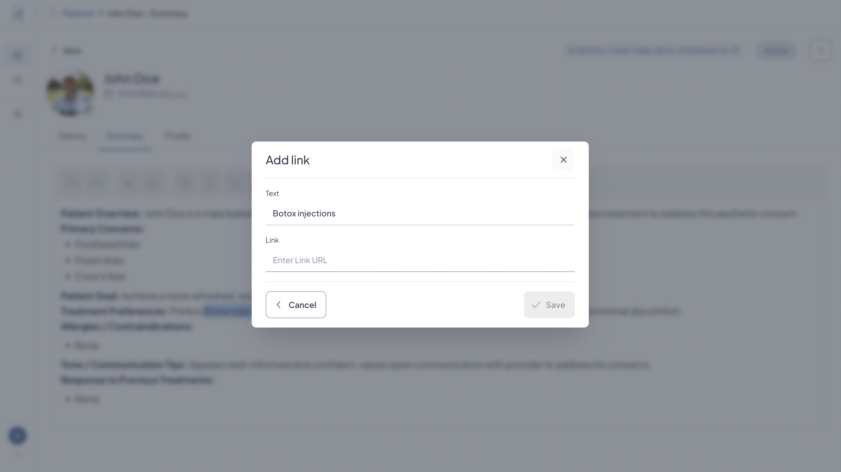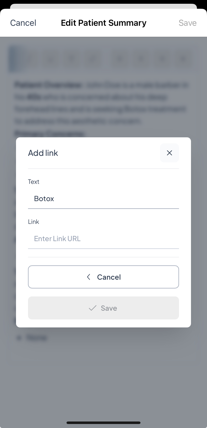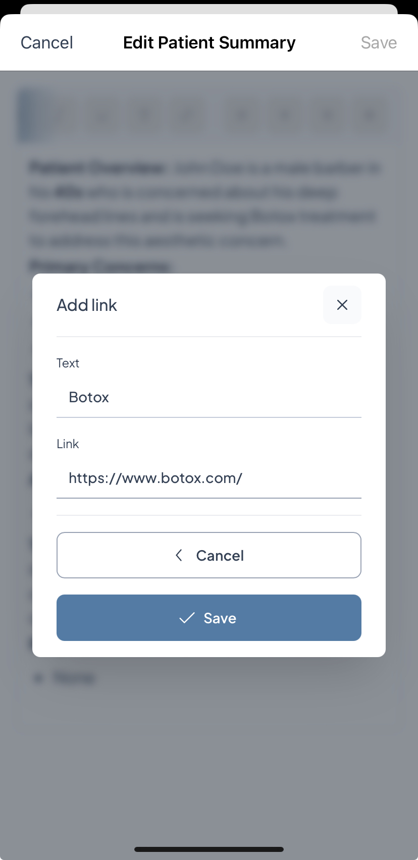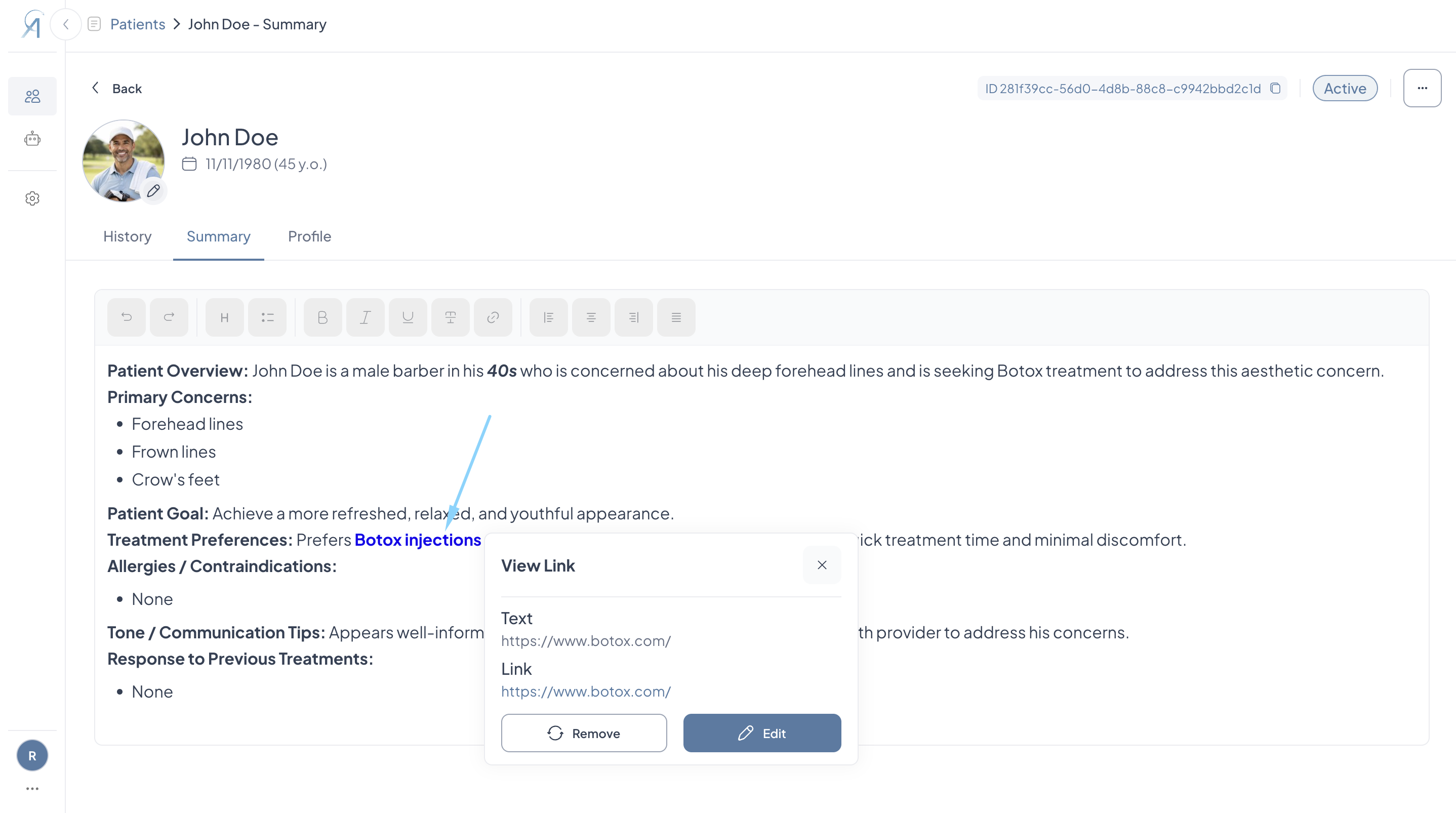 Patient Summary: View, Edit, Add Links
