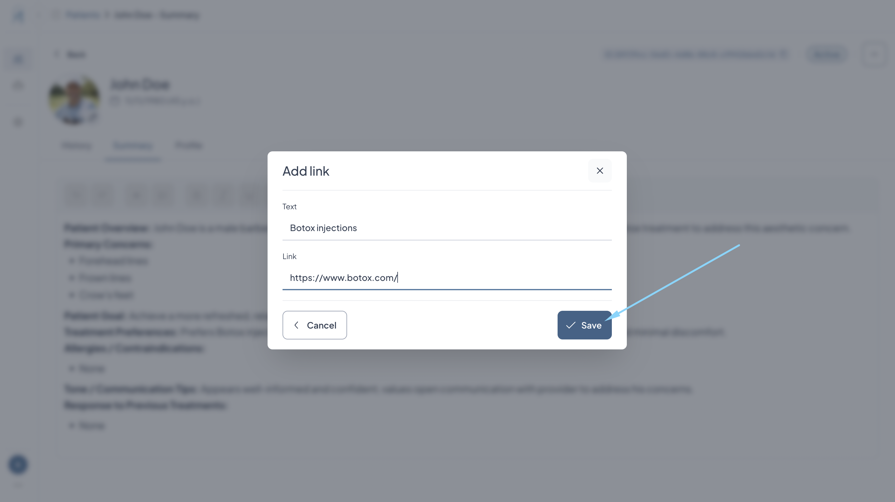 How to Add a Link in the Patient Summary