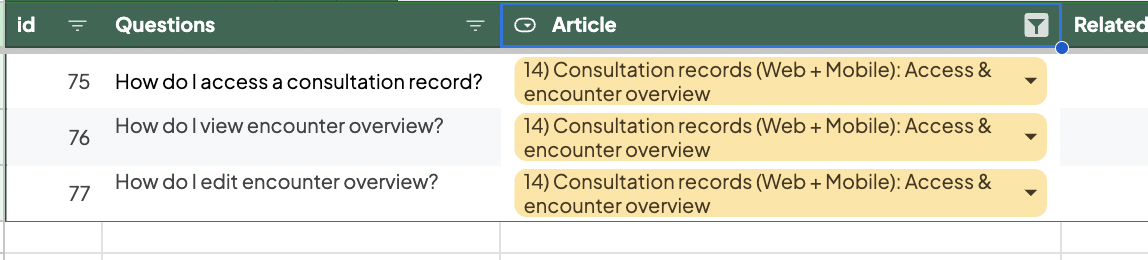 Consultation records (Web + Mobile): Clarifying questions, copy, remarks